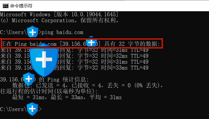 域名解析需要由專門的域名服務(wù)器(DNS)來(lái)完成,整個(gè)過(guò)程是自動(dòng)進(jìn)行的,實(shí)際操作中可以通過(guò)ping命令的方式查詢域名對(duì)應(yīng)的IP地址。.png)